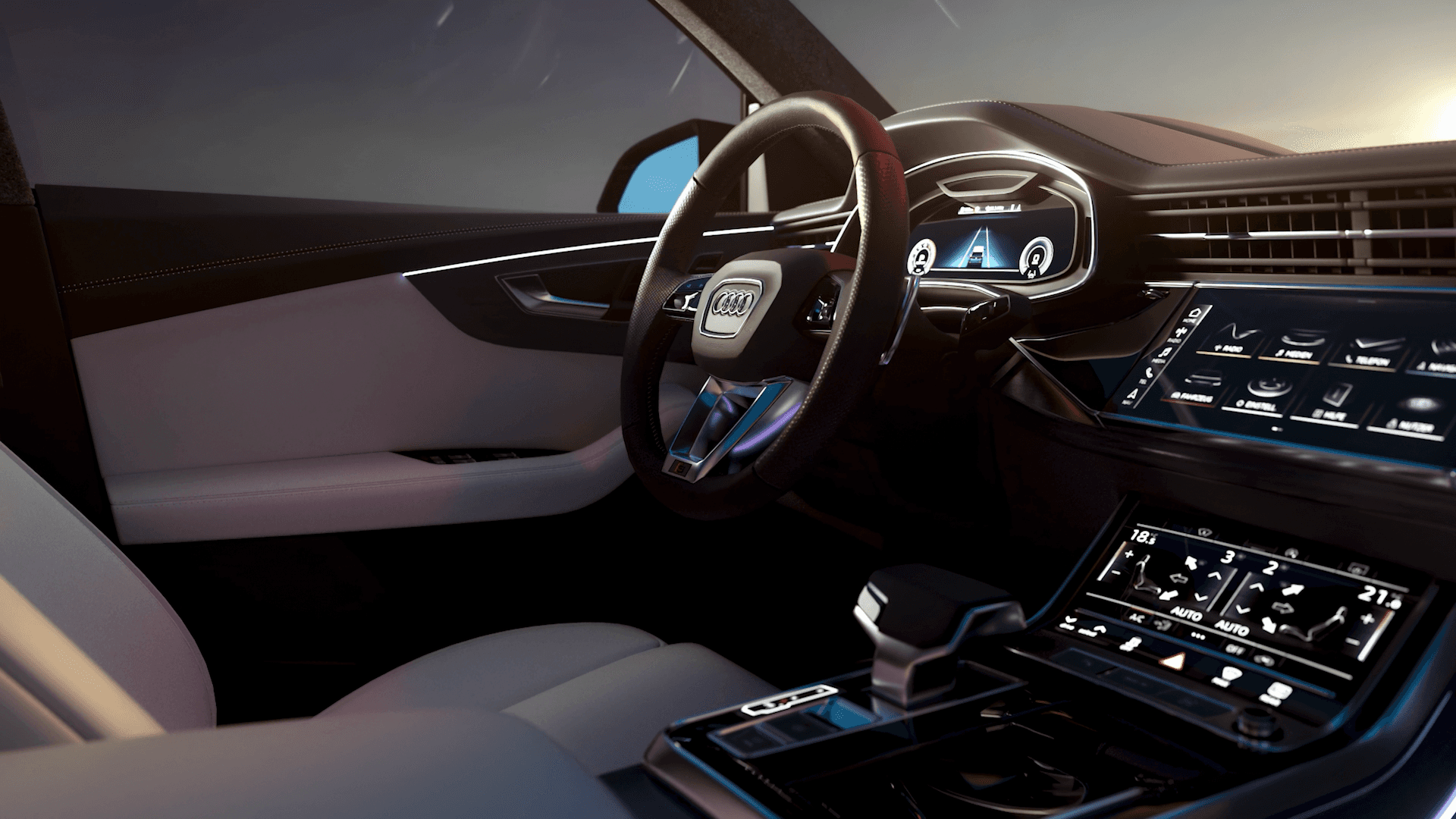 For our recent CGI exercise, we brought the dynamic elegance of the Audi Q8 to life with stunning realism and precision. Focusing on its bold design language and cutting-edge features, we crafted a series of visuals that highlighted the vehicle’s sculpted contours, signature LED lighting, and luxurious interior.